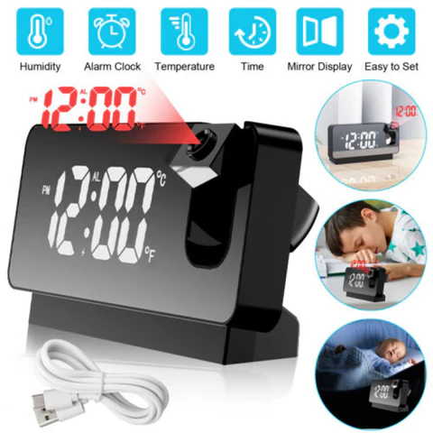 Transformez vos matins avec notre réveil à projection avec miroir, un ajout élégant à toute pièce. Son design moderne et fonctionnel offre une façon unique de visualiser l'heure, projetée avec netteté sur votre plafond ou mur. Non seulement pratique, il apporte une touche de sophistication à votre espace.